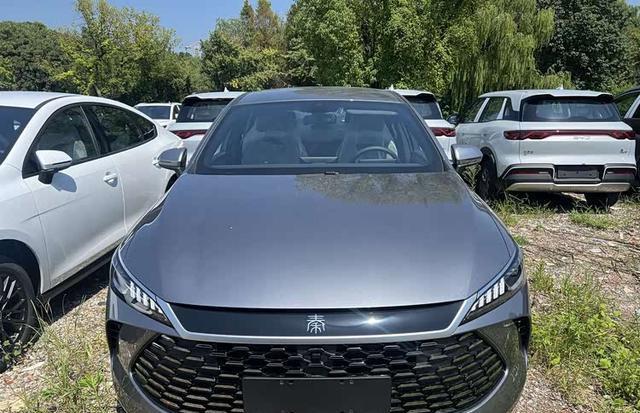 外观方面,看到实车的第一眼,那种熟悉的“龙颜”美学扑面而来。2026款秦PLUS DM-i的外观造型基本延续了现款的成功设计,整体辨识度非常高。车头依然是低趴动感的姿态,配以那张标志性的“大嘴”式进气格栅,内部龙鳞状的镀铬饰件呈扩散风格,显得精致又霸气。两侧的“C”形导风槽尺寸不小,不仅提升了视觉效果,也对空气动力学有一定帮助。